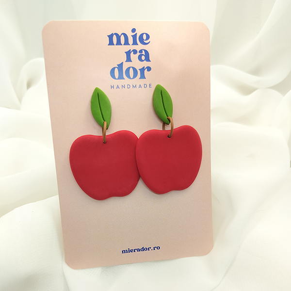 Cercei din pastă polimerică în formă de mere roșii, dulci și vibrante. Un simbol al prospețimii și al poftelor simple. Modelați manual, cu atenție la detalii, pentru un look jucăuș și plin de culoare.