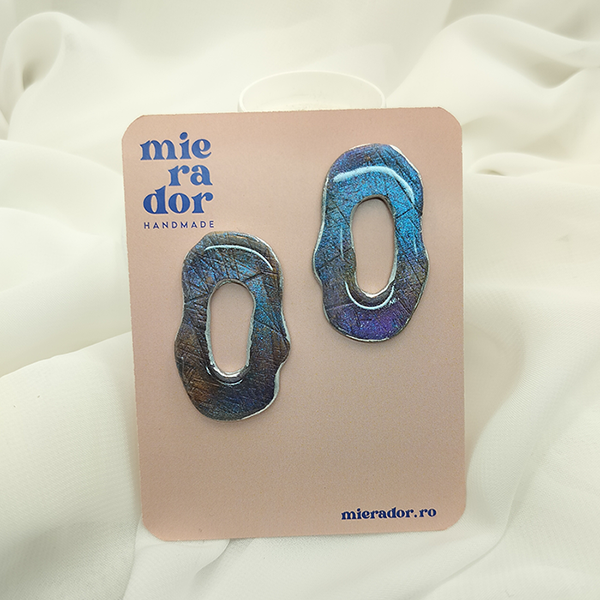 Cercei cu textură metalică și formă fluidă, inspirați din reflexele adâncurilor. O piesă contemporană, cu accente de mister și forță.